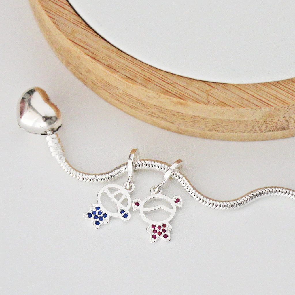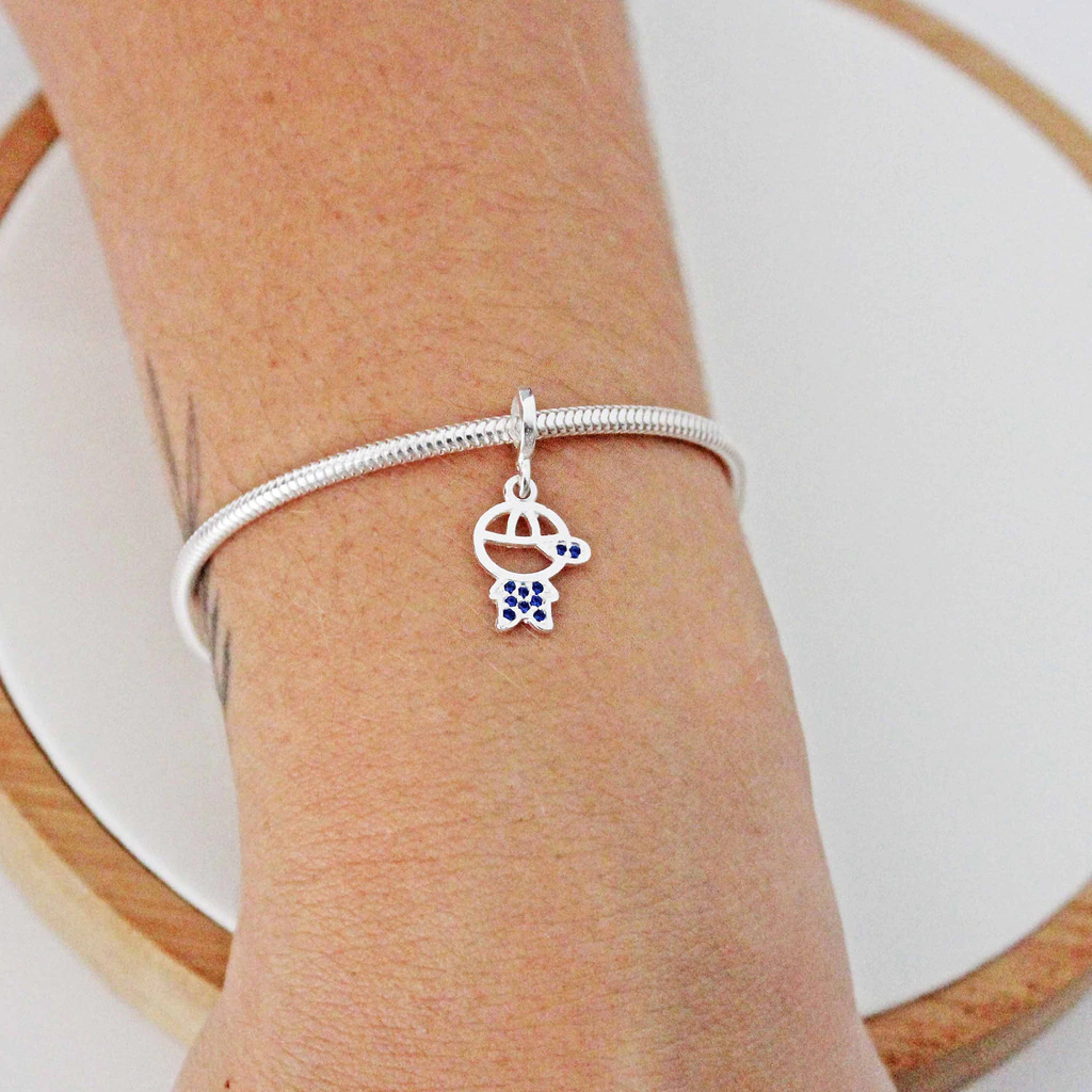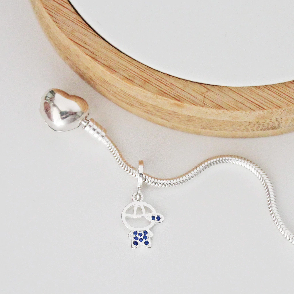 Delicado e cheio de significado, este berloque em formato de menino é confeccionado em prata 925 e possui detalhes cravejados em azul, que adicionam brilho e charme especial à peça. Perfeito para simbolizar o amor de mãe, a ligação familiar ou celebrar momentos únicos, é ideal para compor pulseiras de berloques e colecionar lembranças inesquecíveis.