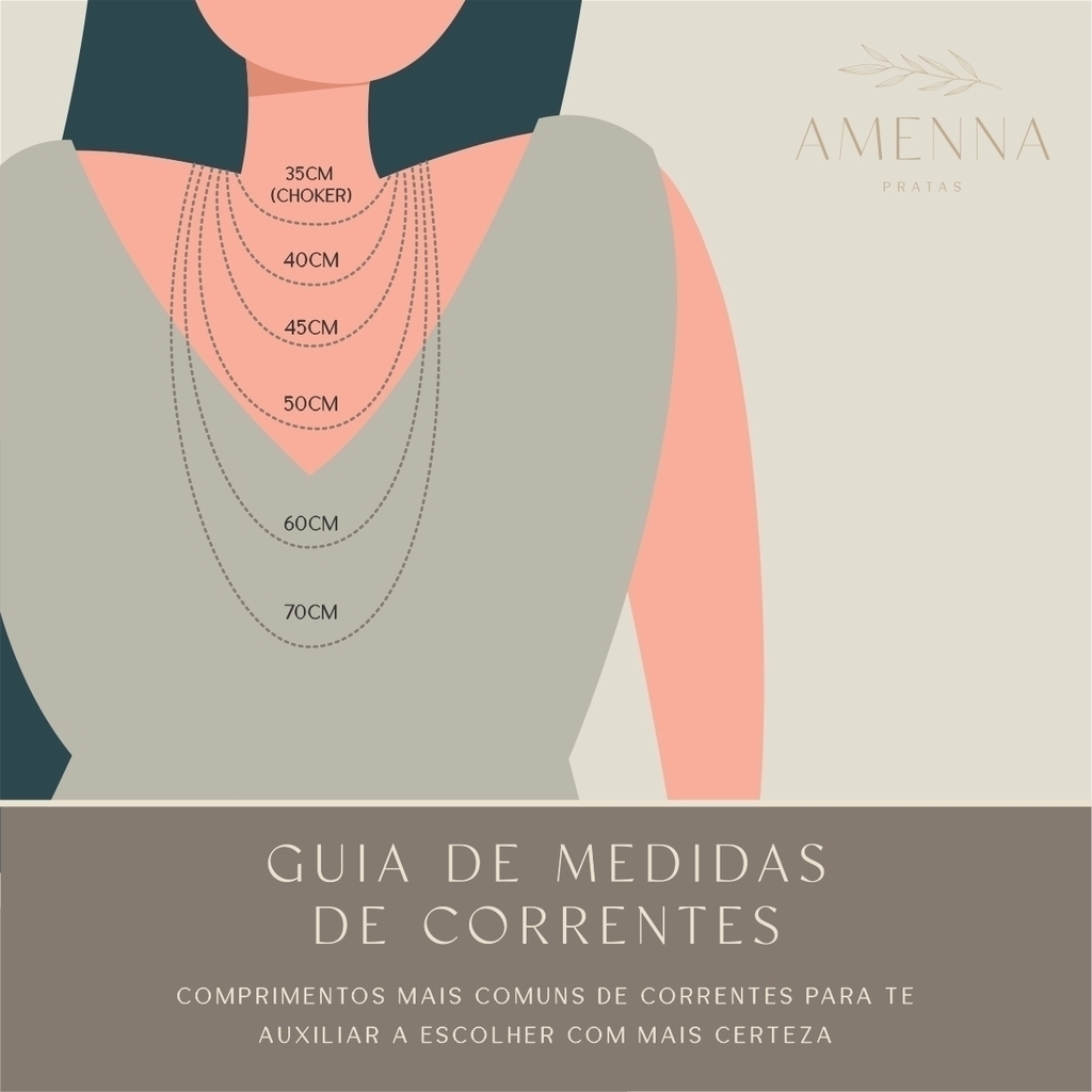 Comprimento: Aproximadamente 35cm (corrente) + 5cm (extensor)