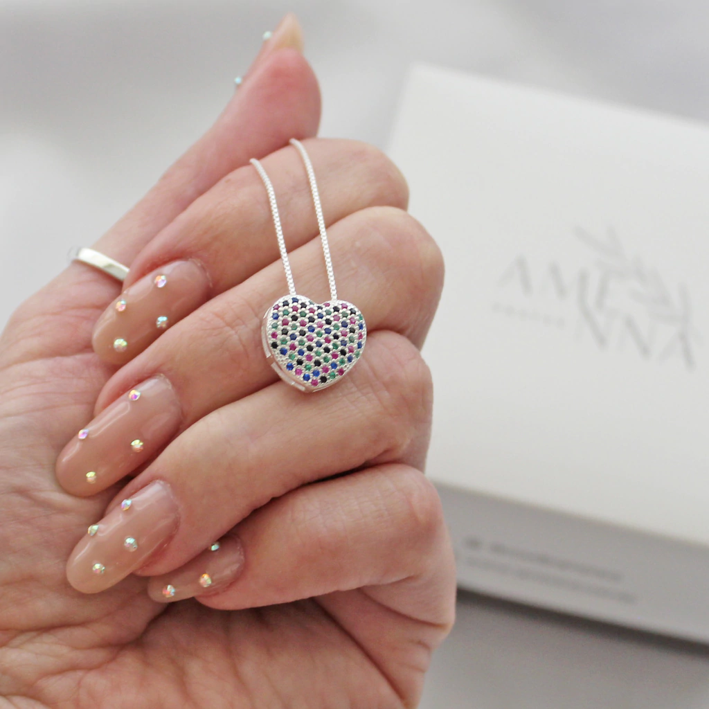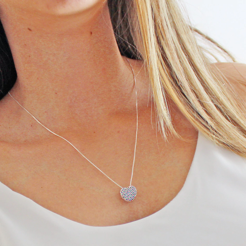 Colar Coração Cravejado Grande Pedras Coloridas