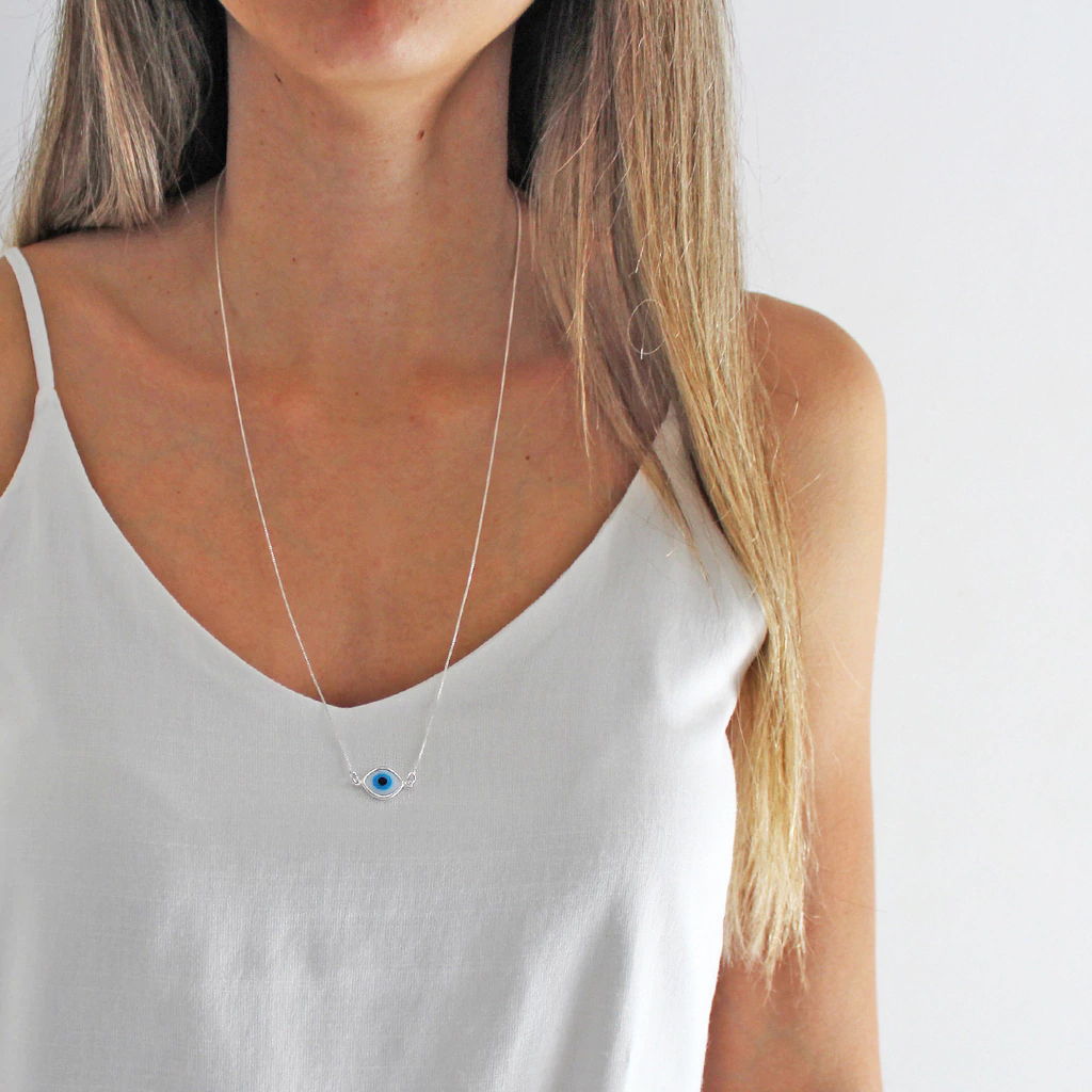 Proteção com estilo. Este colar delicado possui um pingente de olho grego – símbolo tradicional contra energias negativas. Com design minimalista e acabamento refinado, é perfeito para ser usado sozinho ou em combinações. Um amuleto moderno para quem busca equilíbrio, elegância e boas vibrações no dia a dia.