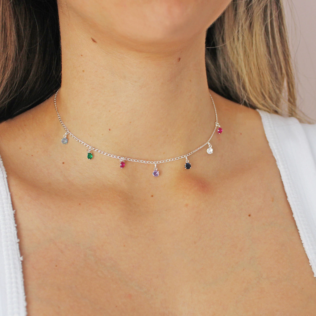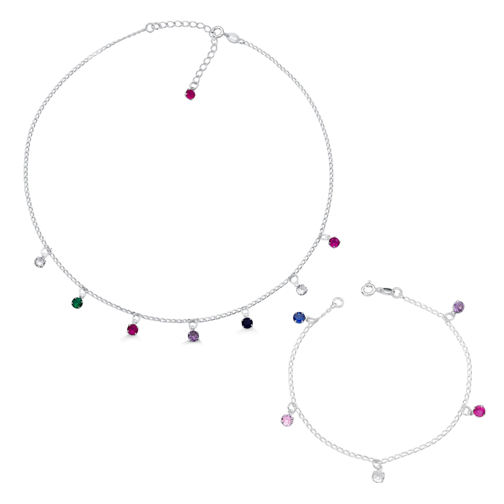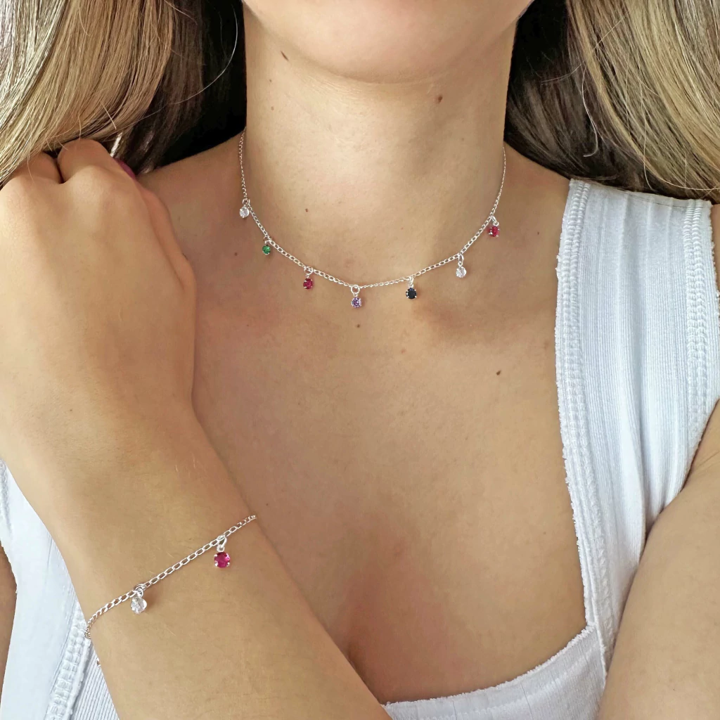 Conjunto Choker e Pulseira Ponto de Luz Zircônias Coloridas
