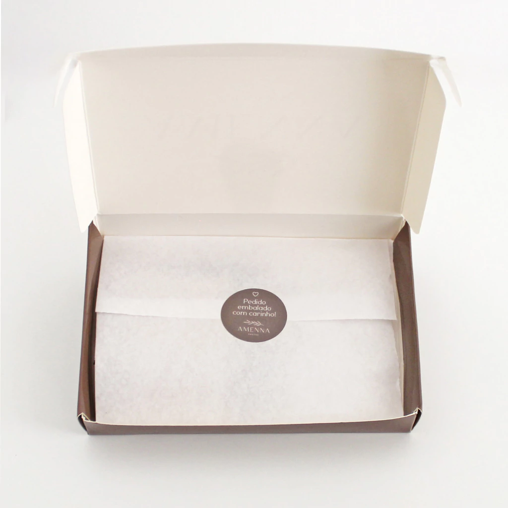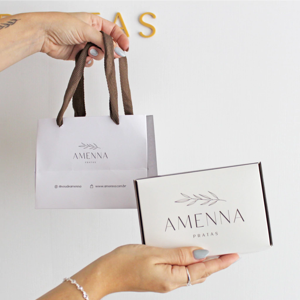 Quem não ama ganhar presentes? E se for acompanhado de uma linda sacola e caixa, seu presente vai se tornar ainda mais especial. Na caixa cabem até 6 dos nossos produtos e acompanha dentro um papel de seda perfumado com o nosso aroma. A caixa e sacola são personalizadas com a logo da Amenna Pratas.